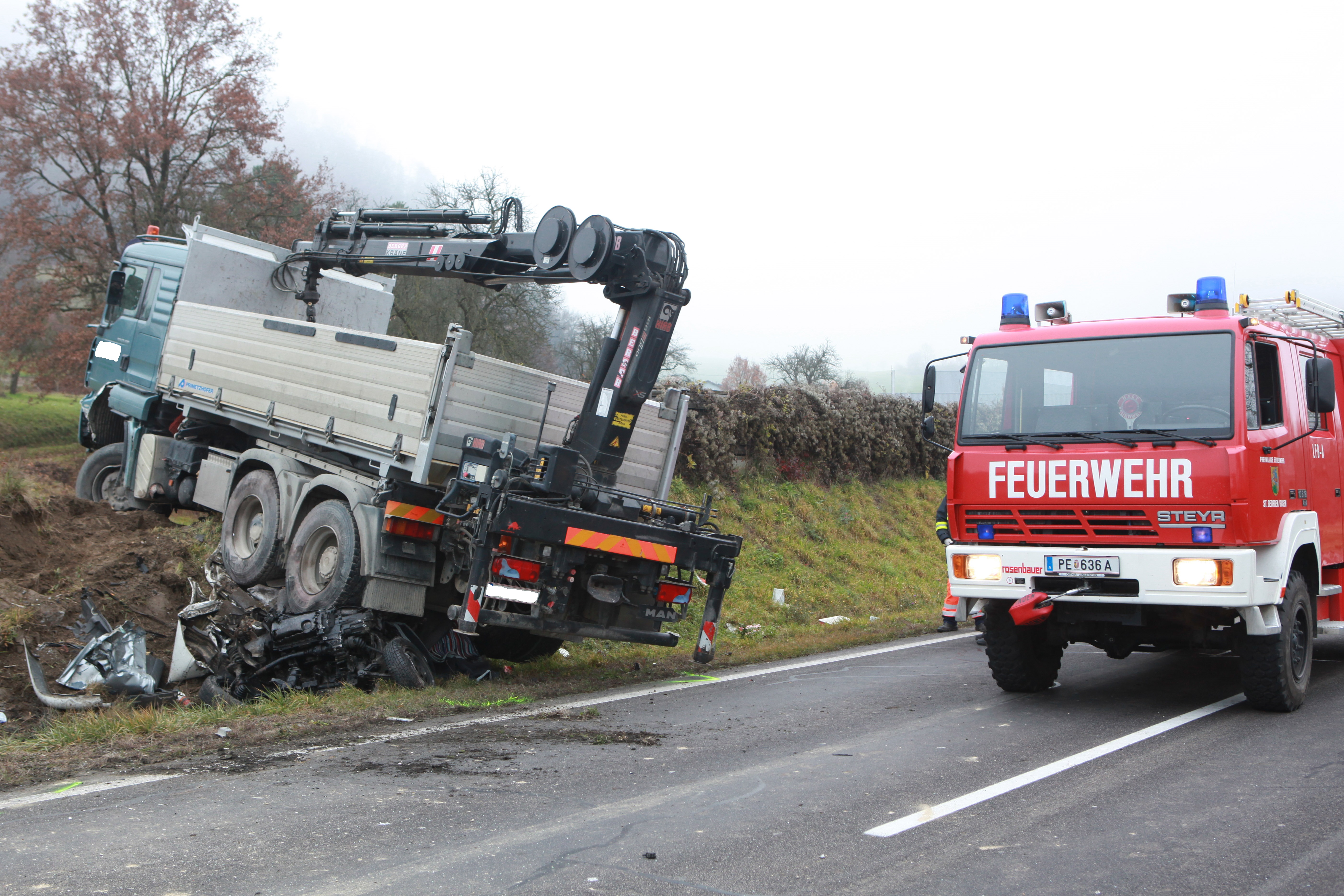 Zwei Personen starben am Morgen des 19. November 2012 auf der B 3 bei Luftenberg (Oberösterreich). Ein Pkw-Lenker kam auf die Gegenfahrbahn und rammte einen Lkw. Der Lkw-Lenker verlor daraufhin die Kontrolle über sein Fahrzeug, rammt einen entgegenkommenden Firmen-Caddy und schleifte diesen mit. Das Schwerfahrzeug krachte in der Folge noch gegen die Lärmschutzwand, der Caddy kam unter dem Lkw zum Stillstand. Auch für diesen Lenker gab es keine Überlebenschancen.